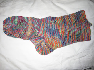 I started these almost two years ago and couldn't quite figure out how to finish them. I finally decreased at the heel and made a gusset for the foot. The second one went very quickly. I finished these on the way to Canada this month.